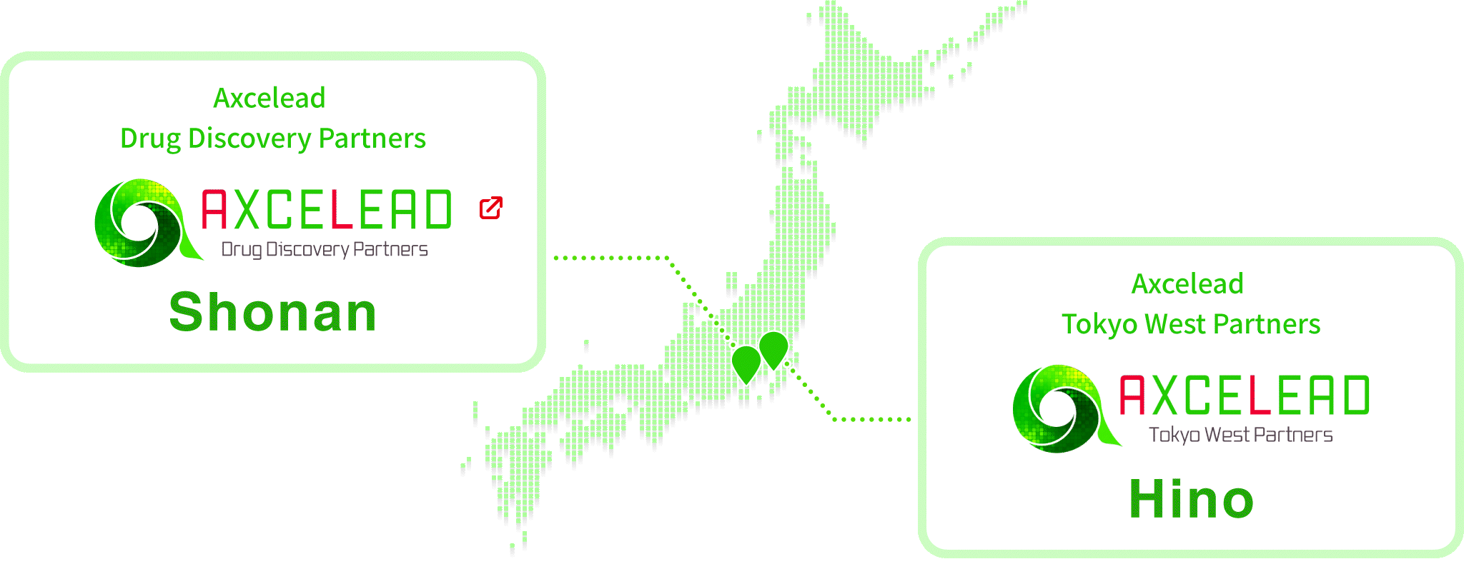 The Axcelead Group provides drug discovery support through two sites in Japan — Shonan (Kanagawa) and Hino (Tokyo).